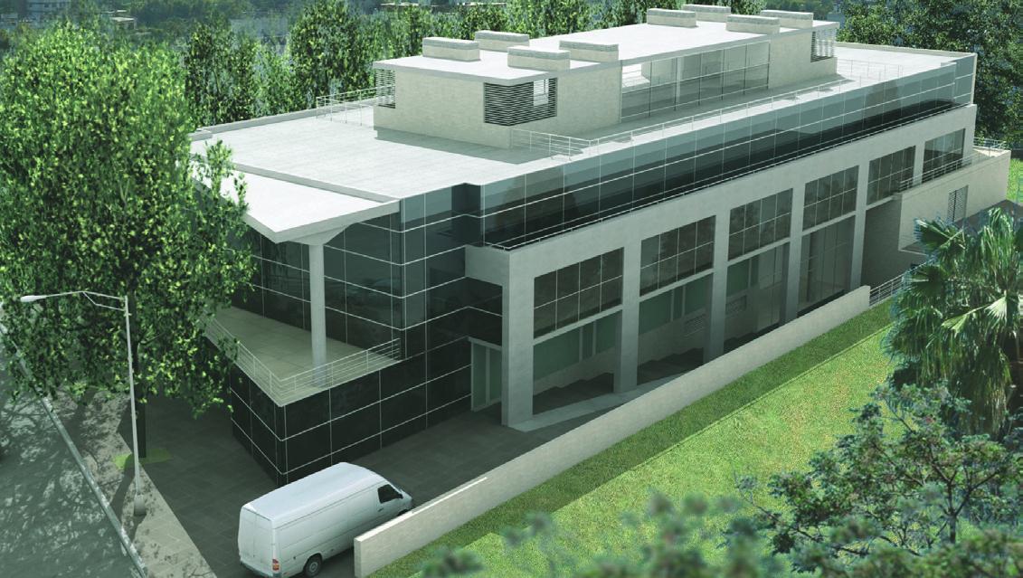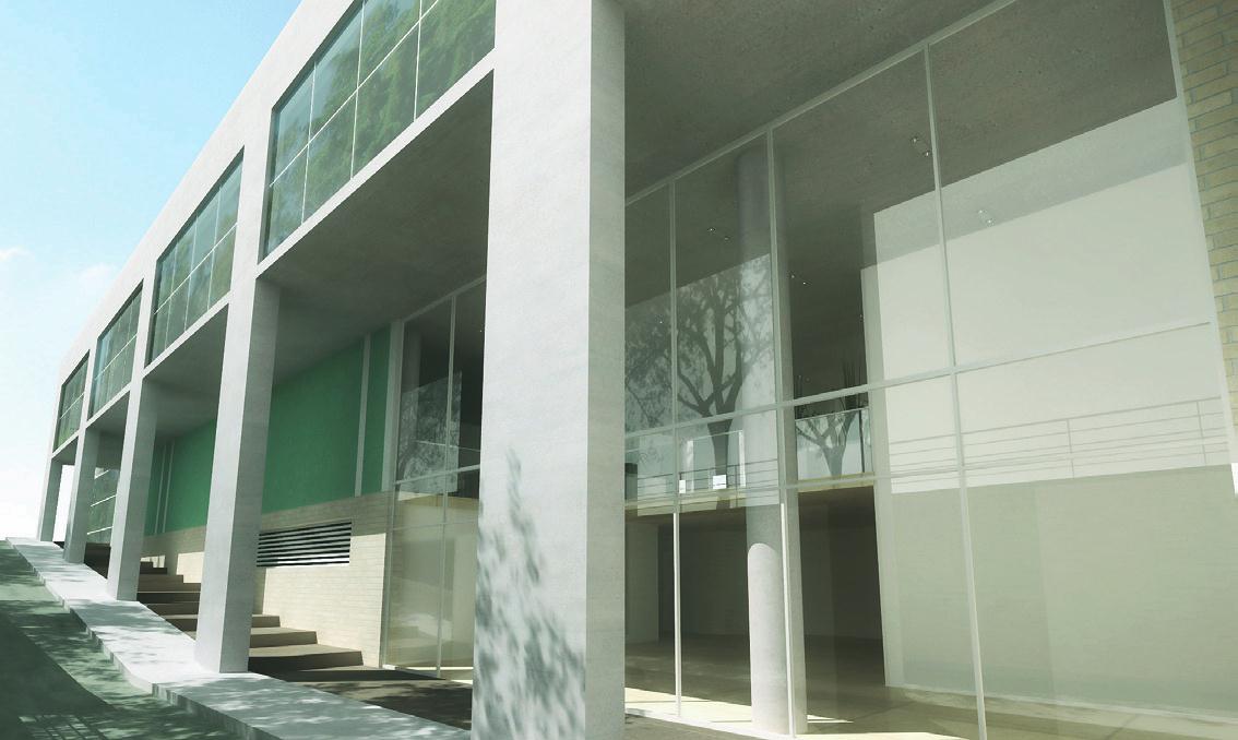 El programa se desarrolla en 4 plantas: un subsuelo para estacionamiento, planta baja para locales comer-ciales y accesos públicos, y dos plantas libres de oficinas con núcleos centrales de servicios. El hall de acceso en doble altura puede ser accedido desde dos niveles diferentes: planta baja como acceso para las visitas, y subsuelo para el personal propio del edificio, accediendo éste último a través una escalera rampada semicu-bierta, dotando de jerarquía a todo el espacio.
